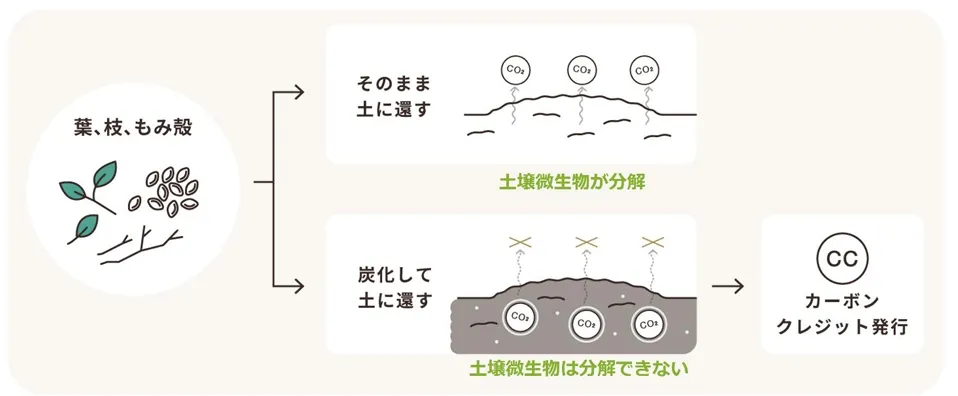 J-クレジットとは、CO2を削減・吸収する活動から生まれるクレジットを国が認証する制度です。TOWINGは、この制度に基づき、もみ殻や植物性残さを炭化させたバイオ炭を農地に施用することにより、炭素を土壌に固定し、長期的にCO2の除去を実現しています。今回の契約によって、TOWINGは中部エリアの排出削減プロジェクトから得られるJ-クレジットを三菱UFJ銀行に売却します。
