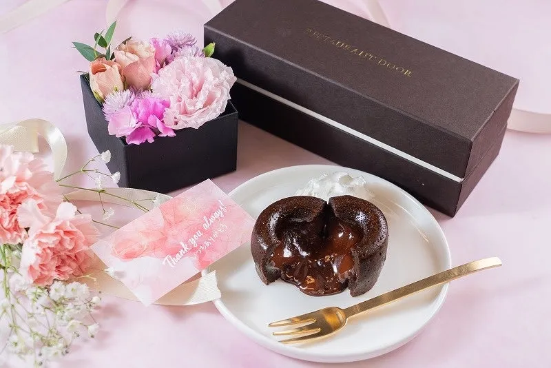 フォンダンショコラはしっとりと焼き上げており、食べる際には温めることで中から流れ出す贅沢なガナッシュが楽しめます。特別な日だからこそ、楽しめるこのスイーツは、母の日のお祝いにふさわしい品々です。