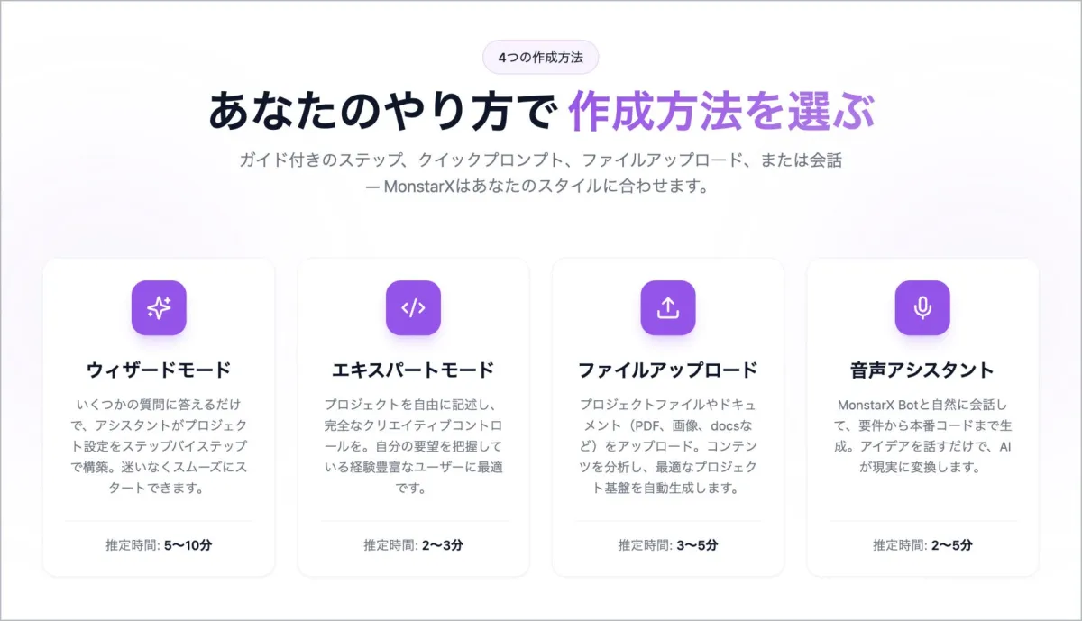 モンスターラボは、MonstarXにおける仕様インプット手段を以下のように4パターンに拡張しました。