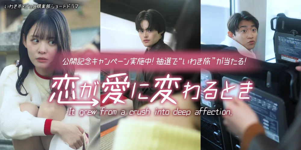 いわき市とクリエイター集団「ごっこ倶楽部」が共同制作した縦型ショートドラマ『恋が愛に変わるとき』が、このほど動画プラットフォームで公開されました。主演には山本栞と八条院蔵人が選ばれ、彼らが演じるカップルが旅を通じて互いの心の距離を縮める様子を描いています。