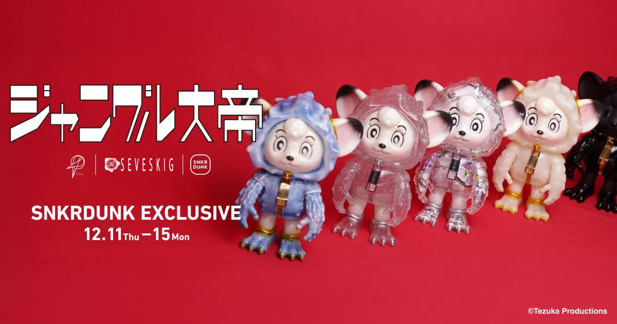 日本のマンガ界を代表する手塚治虫氏の名作『ジャングル大帝』と、日本発のファッションブランドSEVESKIGが見事にコラボレーションを果たしました。その名も「SEVESKIG × ジャングル大帝 × ゴーヤ怪獣」ソフビが、12月11日よりスニダンとして抽選販売されます。この特別なコラボレーションは、ファン必見のアイテムです!