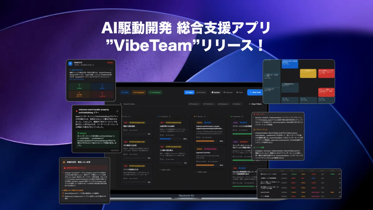 2025年8月5日、株式会社FutureHRはエンジニアチーム向けに新しいデスクトップアプリ「VibeTeam」を正式に発表しました。このアプリはAIを駆使し、タスク管理やコードレビュー、エラー解析など、開発に必要な機能を統合した総合支援アプリです。