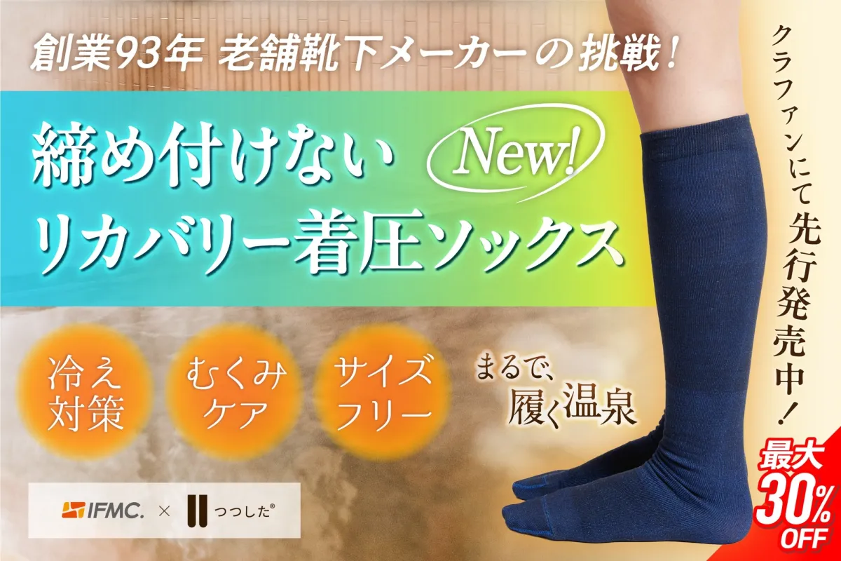 日本の靴下業界に新たな風を吹き込む製品が登場しました。樋口メリヤス工業株式会社が開発したリカバリー着圧ソックス『リカバリーつつした』は、着圧が苦手な方でも快適に着用できる「サイズレス設計」と「締めつけない快適さ」を兼ね備えた画期的な商品です。この商品は、クラウドファンディングを通じて先行販売が行われ、最大30%オフで購入することができます。