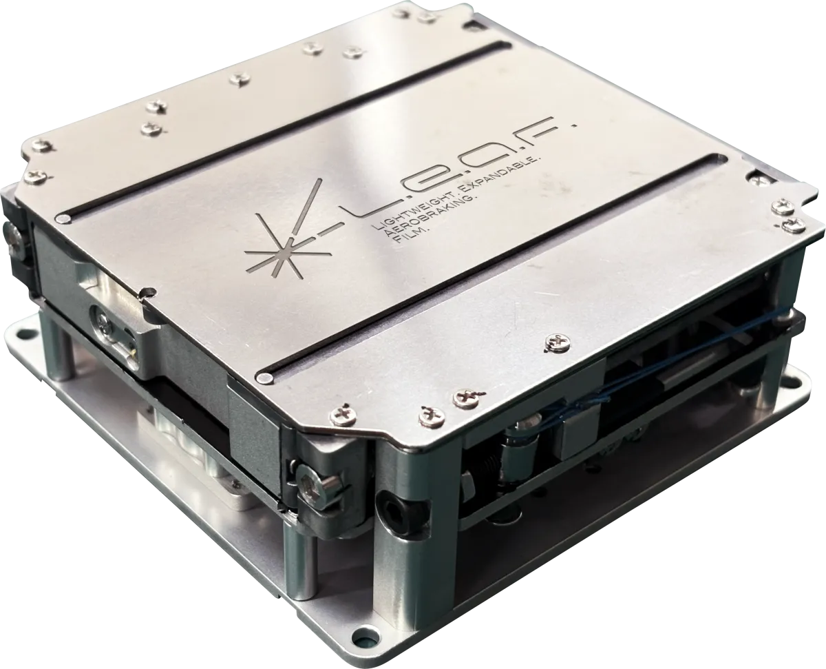 「LEAF」は、収納時にはわずか0.3U(約82mm × 82mm × 30mm)という非常にコンパクトなサイズでありながら、軌道上では最大約3.64㎡の広大な膜面へと展開します。この自己展開型構造は、モーターを用いずに実現されており、軽量性と収納効率を兼ね備えています。さらに、太陽活動が極小期を迎えるといった厳しい条件でも膜面展開率が80%と高く、特に衛星が不安定な姿勢をとる「タンブリング」状態であっても、高度550kmから質量12kg(6U相当)の衛星を5年以内に軌道降下させる設計となっているのです。これにより、さまざまな条件の衛星やロケットにも対応可能となります。