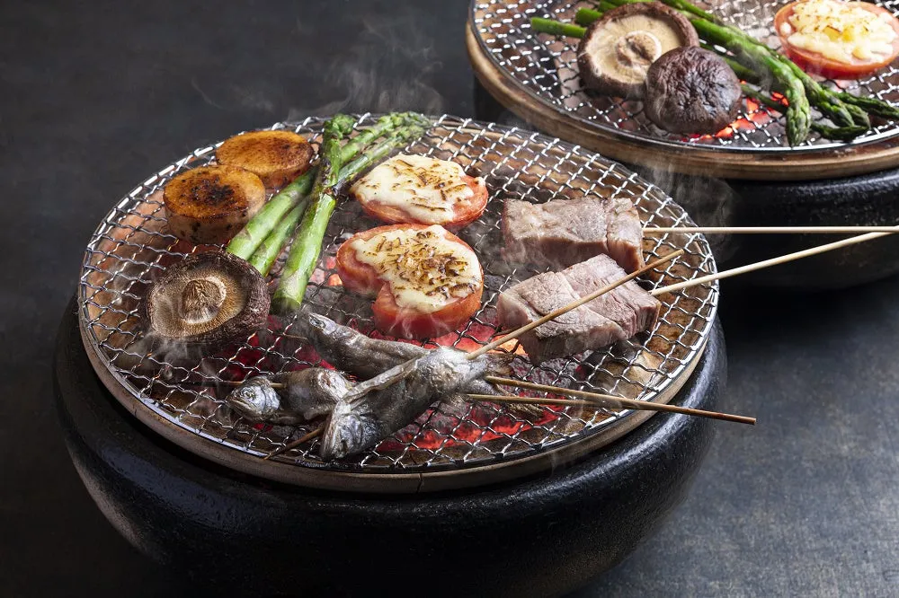 北海道の雄大な自然に囲まれた層雲峡温泉にある「朝陽亭」では、2024年夏、バイキングレストラン「山の料理茶屋 早紅葉」に炭火焼きメニューが新登場しました。