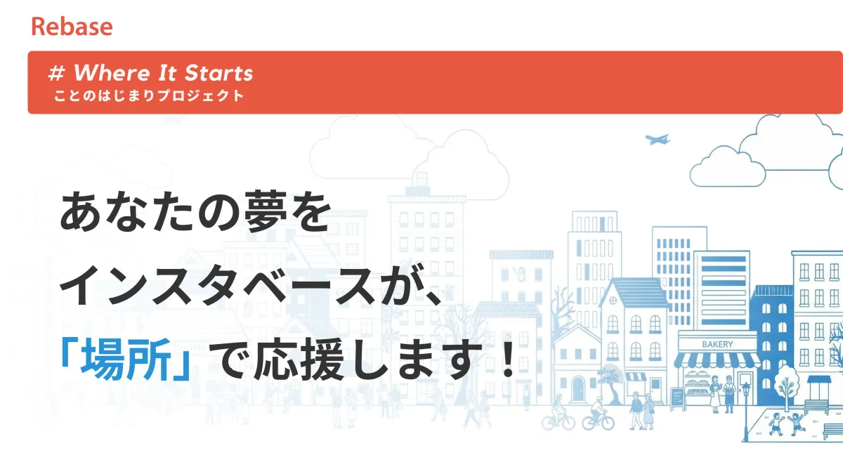 株式会社Rebaseが運営するレンタルスペースのマッチングプラットフォーム、インスタベースが新たに「#Where It Starts ことのはじまりプロジェクト」をスタートしました。このプロジェクトは、あなたが夢見ていることを「場所」を通じて形にする手助けをすることを目的としています。