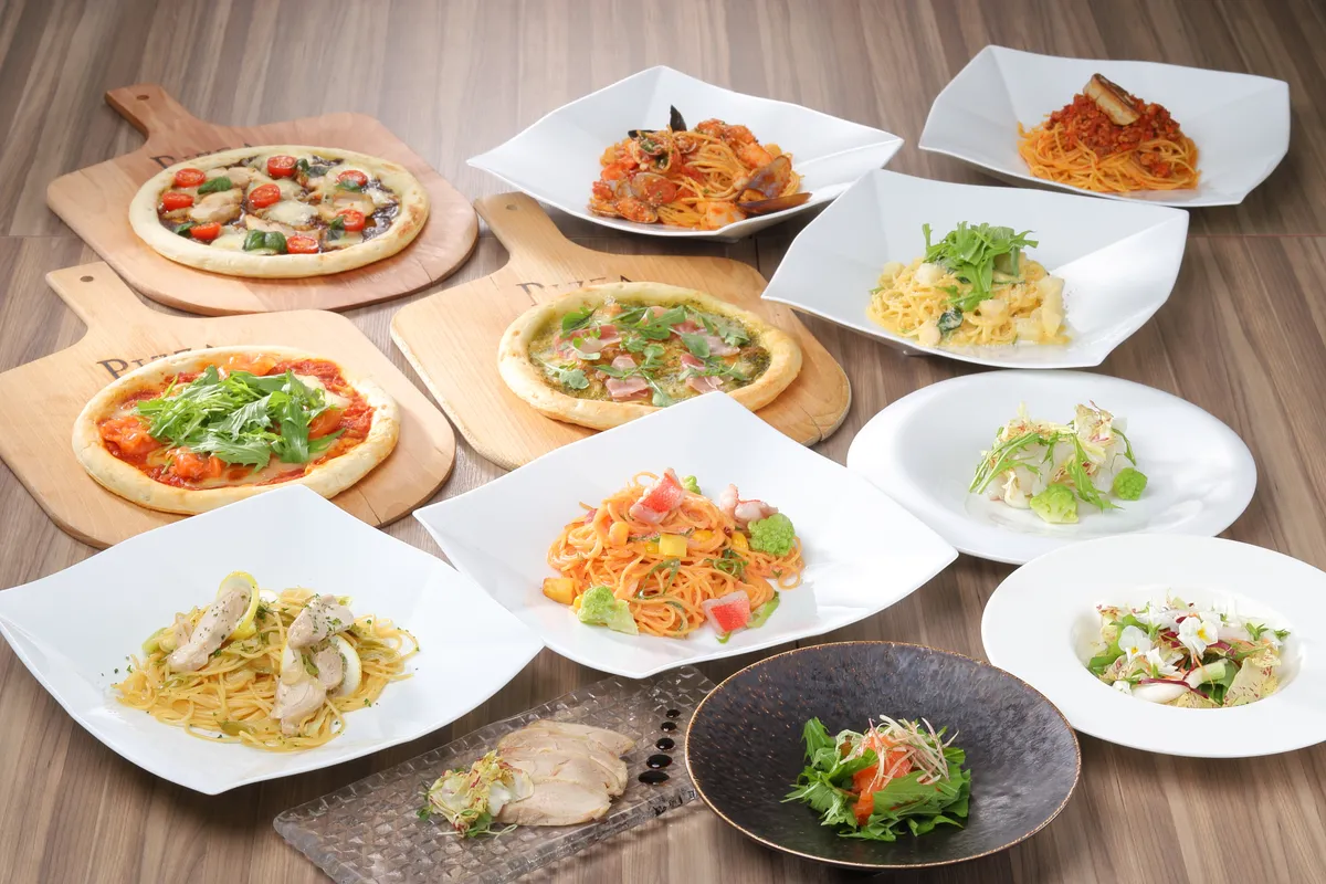 また、パスタのメニューも豊富で、和風生ハムパスタやツナとケッパーのレモン風味、懐かしいナポリタンなど、多彩な味が堪能できます。オードブルには、京豆腐を使用したギリシャサラダ風や、和風タラモサラダ、シーフードのマリネなど、地元の食材を活かした料理が並びます。