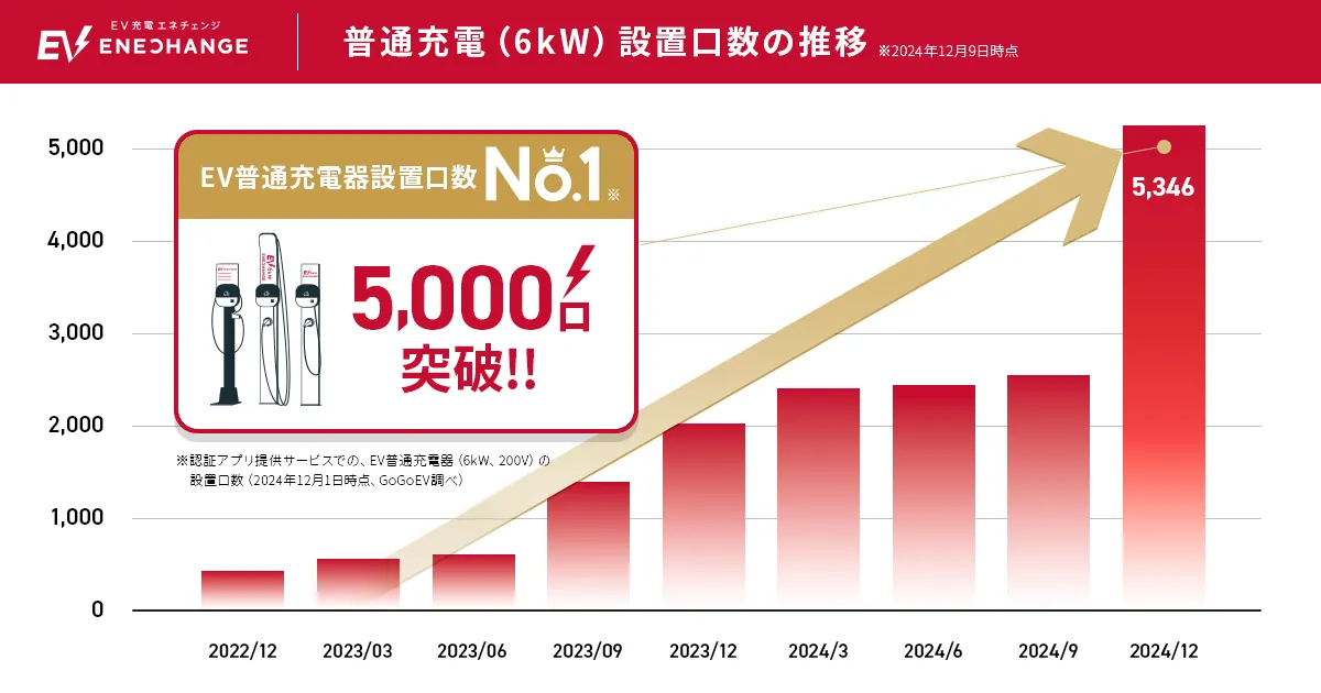 ENECHANGE株式会社(本社:東京都中央区、代表取締役CEO:丸岡 智也)は、革新的なEV充電サービス「EV充電エネチェンジ」の設置口数が5,000口を突破したことを発表しました。これは、電気自動車(EV)インフラの拡充に向けた大きな一歩であり、持続可能な社会の実現に向けた企業の取り組みを象徴しています。