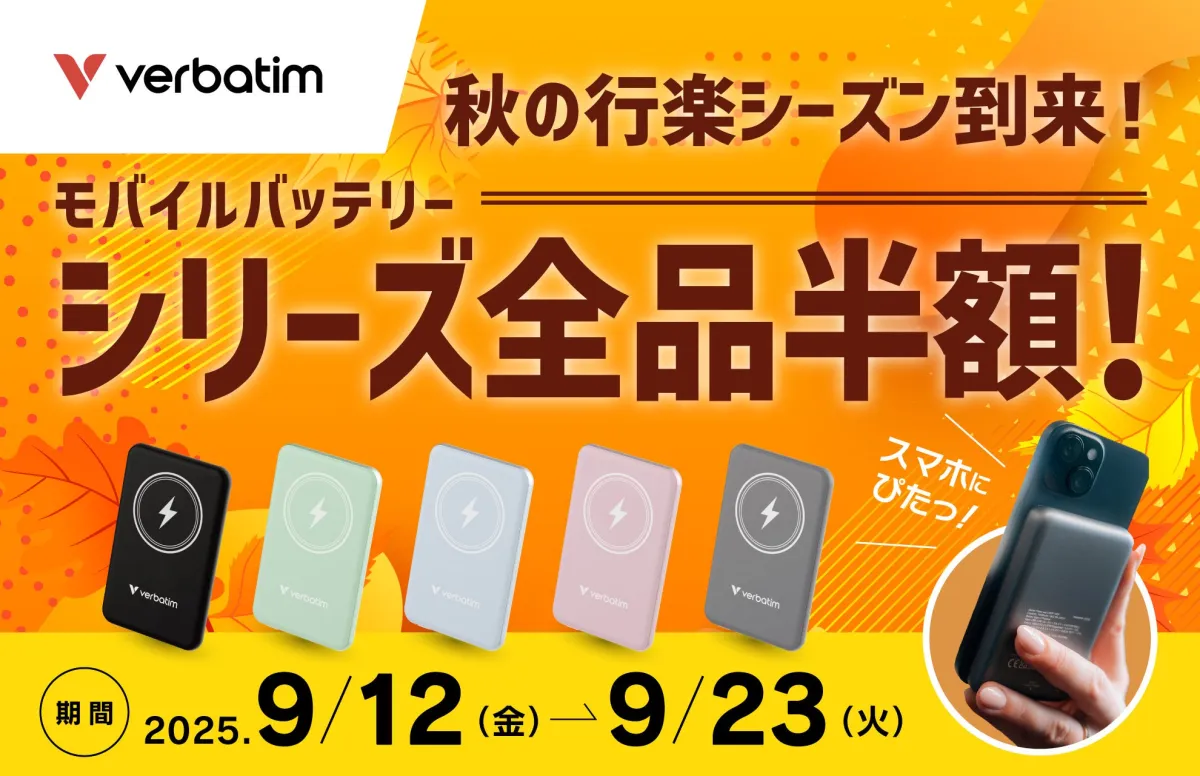 秋の行楽シーズンの到来を迎え、株式会社アイ・オー・データ機器が取り扱うVerbatimのMagSafe対応モバイルバッテリーが特別価格で手に入るチャンスが訪れます。9月12日から9月23日までの期間中、シリーズ全品が半額となるセールが開催されます。この機会を逃さず、どのような商品があるのか、詳しく見ていきましょう。