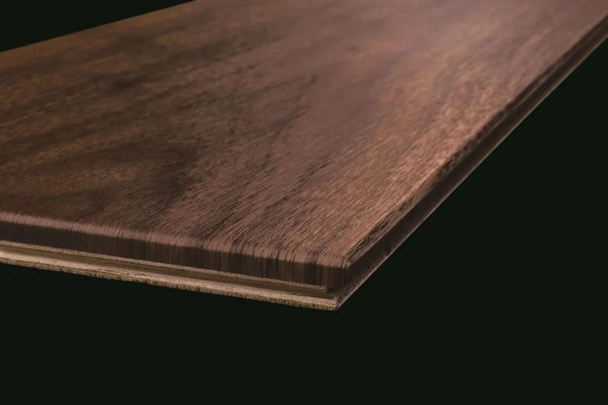 『トリニティ』は、特殊強化シートを採用し、床材の表面だけでなく、その周辺の木口面もエレガントに仕上げることで、リアルな立体感を実現しました。この技術は業界初のもので、DAIKENの特許取得済みの革新です。これにより、シート化粧床材でありながらも、高級感あふれる仕上がりを叶えることができています。