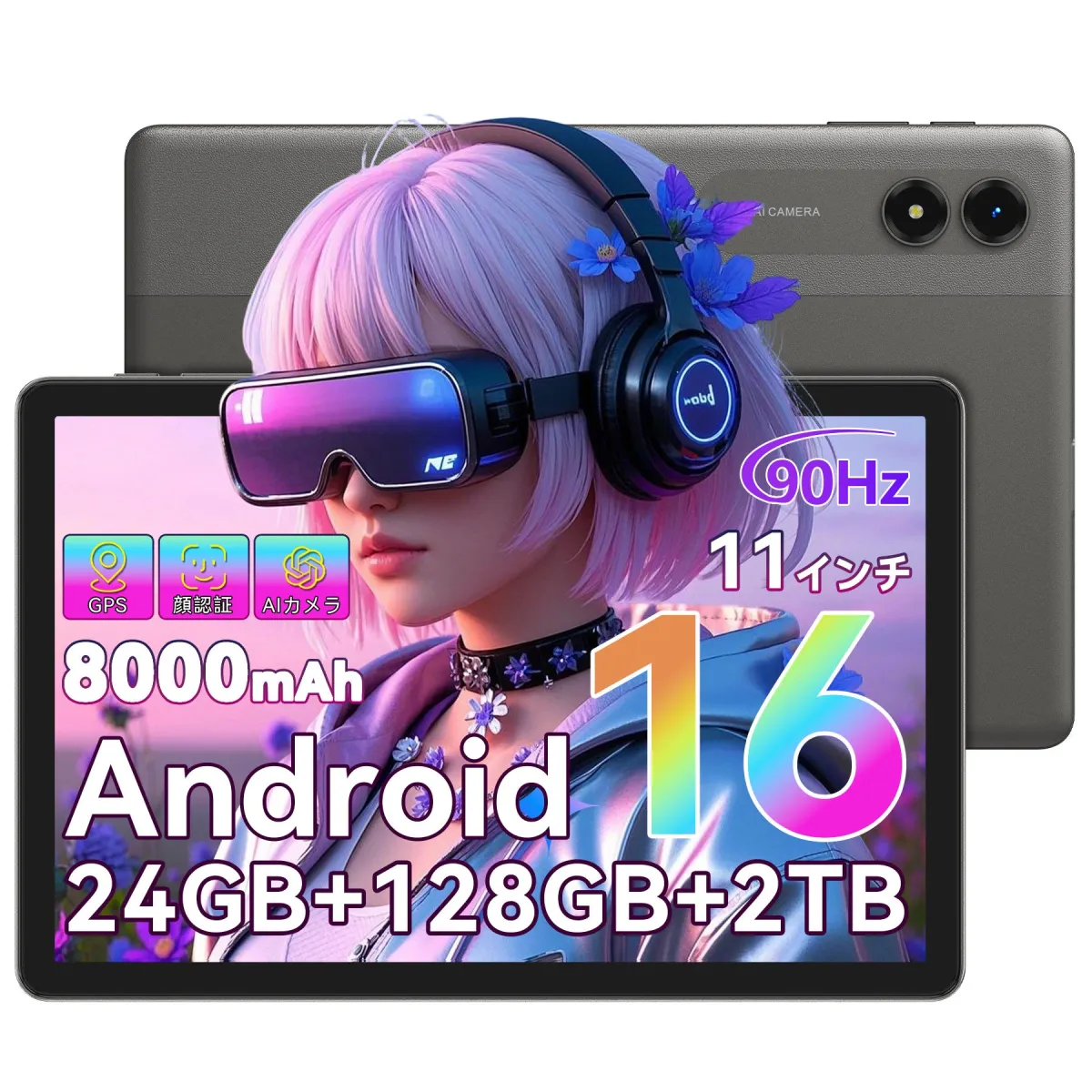 このタブレットは「Unisoc T7250」のオクタコアプロセッサーを搭載しており、6GBのRAMに加え最大18GBの仮想RAMを使用することで、24GB相当のパフォーマンスを提供します。128GBのストレージは、最大2TBのmicroSDカードで拡張可能で、大量の写真や動画、アプリデータを十分に保存できます。さらに、顔認証やGPS機能も備えているので、学習やビジネスにも便利です。