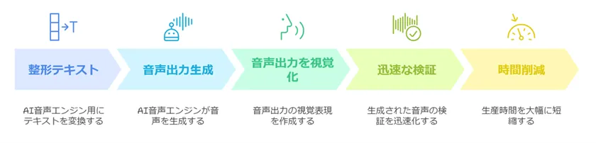 そこで、AI音声生成ソリューションの導入が進んでいる中で、TOPPANクロレは特に日本語長文に焦点を当て、高精度かつ迅速な音声生成を可能にするシステムの開発に着手しました。このシステムにより、長文のAI音声制作にかかる工数を削減し、聞きやすい音声コンテンツを生成することが可能になります。