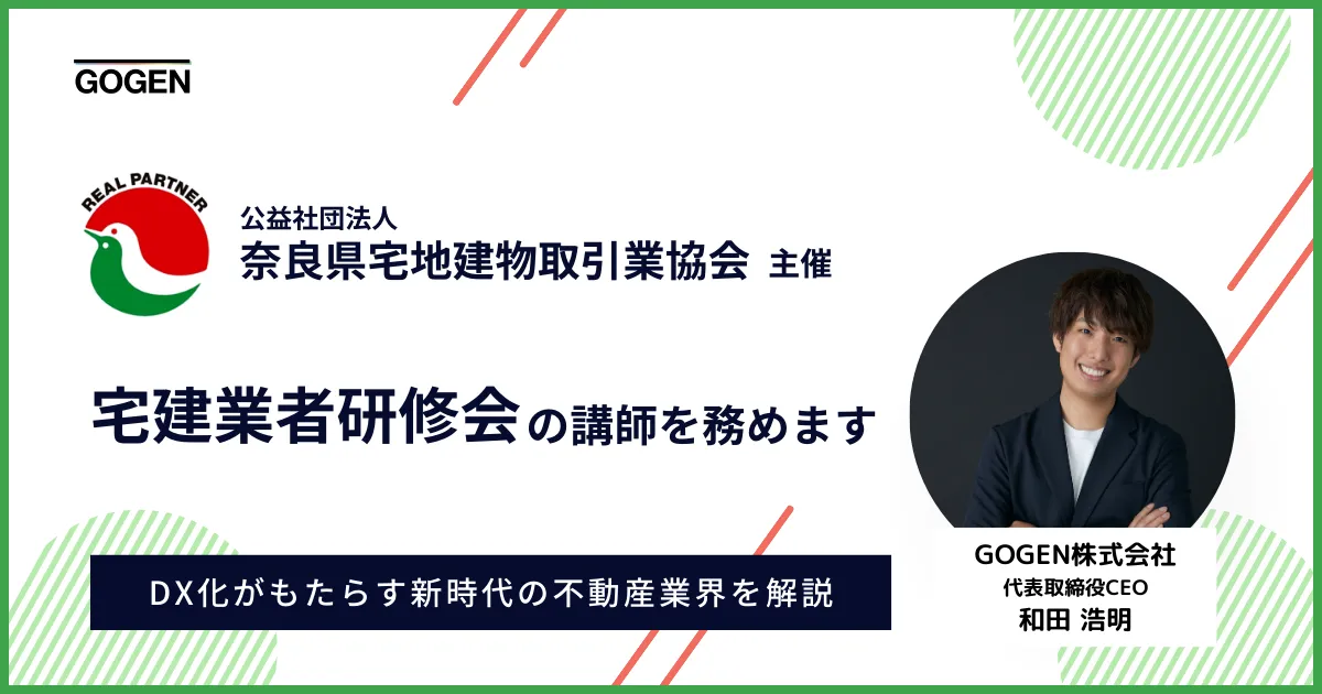 2025年2月21日、公益社団法人 奈良県宅地建物取引業協会主催の宅建業者研修会において、GOGEN株式会社の代表取締役CEO、和田浩明氏が講師として登壇します。この研修会は、ますます変化する不動産業界において、必要な知識とスキルを提供する場となります。