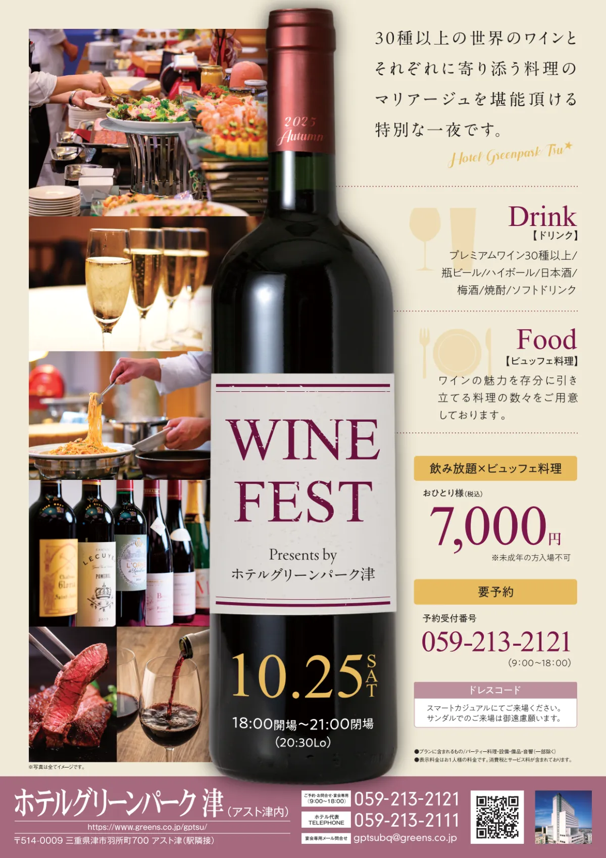 「WINE FEST」は、ホテルグリーンパーク津が贈る、洗練されたワインと料理のイベントであり、アートのような一夜を提供します。ぜひ、ご参加ください。