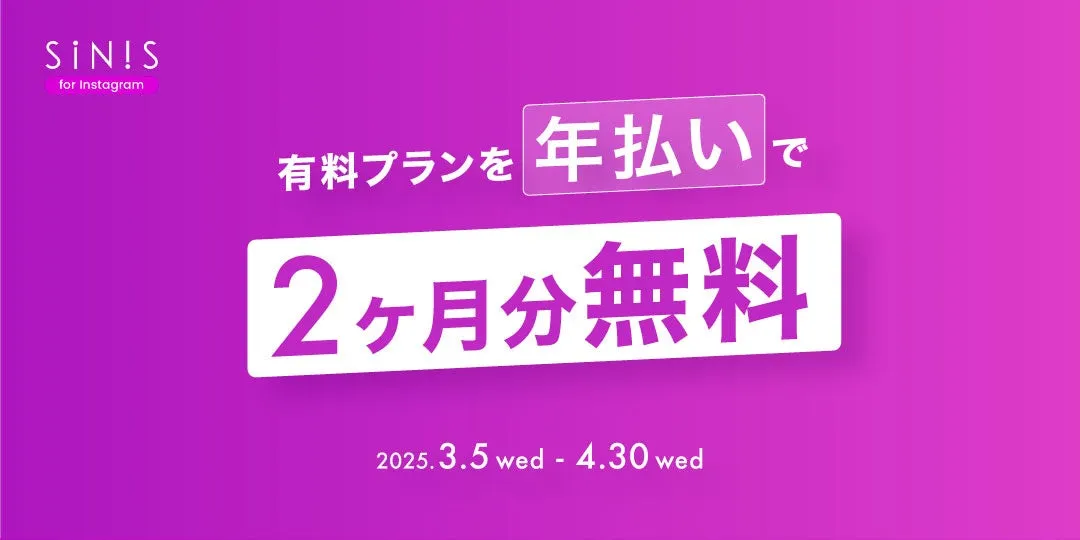 キャンペーン期間中に「SINIS for Instagram」の有料プランを年払いで契約することで、次のような割引が適用されます。