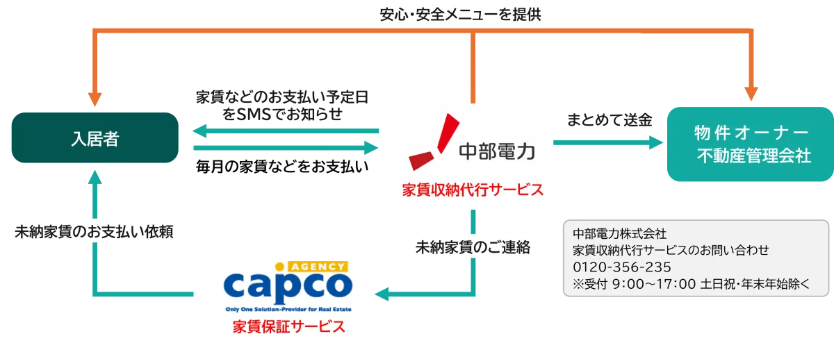 1. 中部電力が賃借人から口座振替等で家賃を回収。