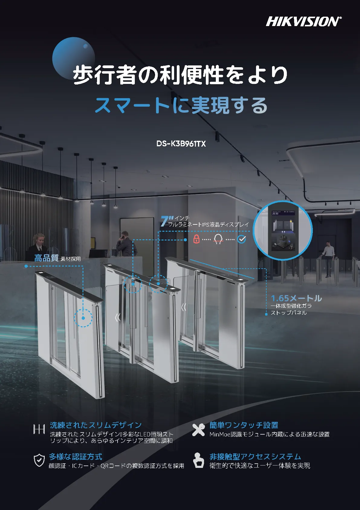 HIKVISIONの新型セキュリティゲート「K3B961シリーズ」は、最新のテクノロジーとユーザー視点の設計が融合した結果、空間の価値を新たに創造する製品に仕上がっています。これにより、セキュリティ面での課題解決を目指す施設はもちろん、効率的に管理したい企業にとっても、魅力的な選択肢となるでしょう。