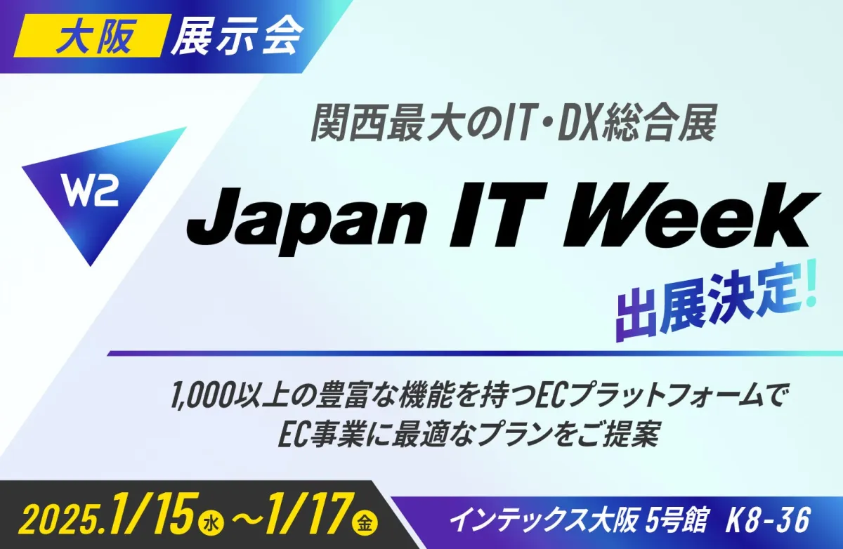 W2株式会社は、2025年1月15日から17日にかけてインテックス大阪で開催される「Japan IT Week【関西展】(EC・店舗 Week)」に出展します。この展示会では、D2Cやリピート通販向けECプラットフォーム「W2 Repeat」と、OMO(Online Merging Offline)対応型の総合ECプラットフォーム「W2 Unified」を紹介します。来場者は、個別相談や実機デモンストレーションを通じて、W2の最新技術を体験できます。