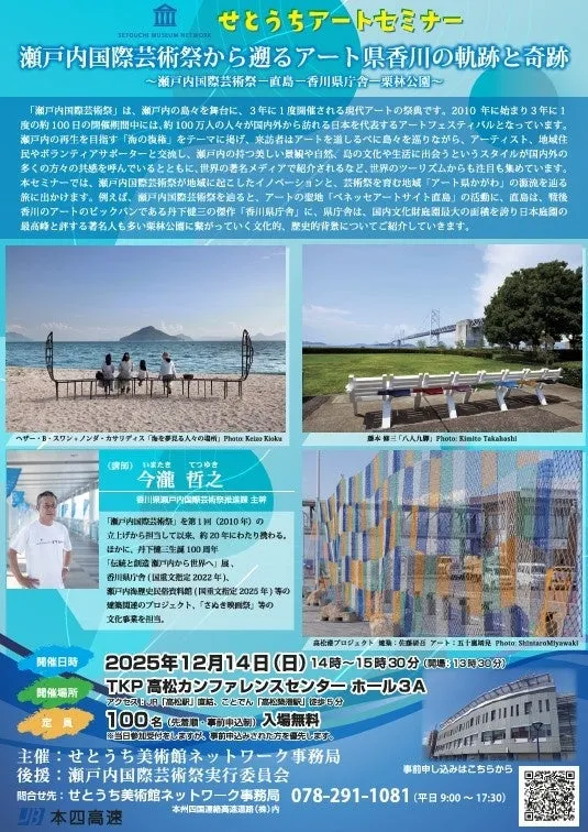 『せとうち美術館ネットワーク』が主催する『せとうちアートセミナー』が、12月14日(日)に高松市で開催されます。これは、瀬戸内地域の文化芸術の魅力を発信し、地域の美術館や博物館の活動を通じて交流を促進することを目的とした講演会です。