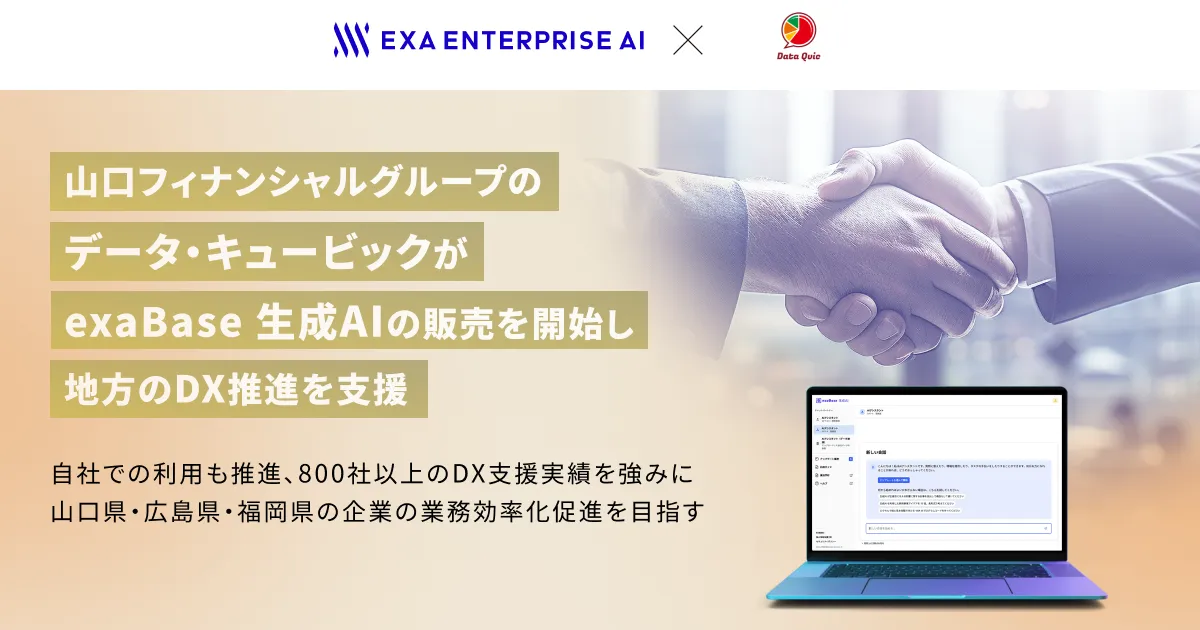 山口フィナンシャルグループの子会社、データ・キュービックが株式会社Exa Enterprise AIと連携し、法人向け生成AIサービス「exaBase」を導入することが発表されました。これにより、地方の企業におけるデジタルトランスフォーメーション(DX)が加速し、業務効率化が期待されています。