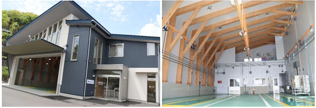 新しい営業所は二階建てで、延床面積541.79㎡の広さを誇ります。建物の設計には特別な配慮がなされており、CO₂排出量を抑えるために、木構造が採用されています。使用されている木材の99%は国産材で、これにより森林約3000㎡分の二酸化炭素を固定することができます。これは、従来の鉄骨造と比較しても大幅なCO₂排出量の削減につながります。