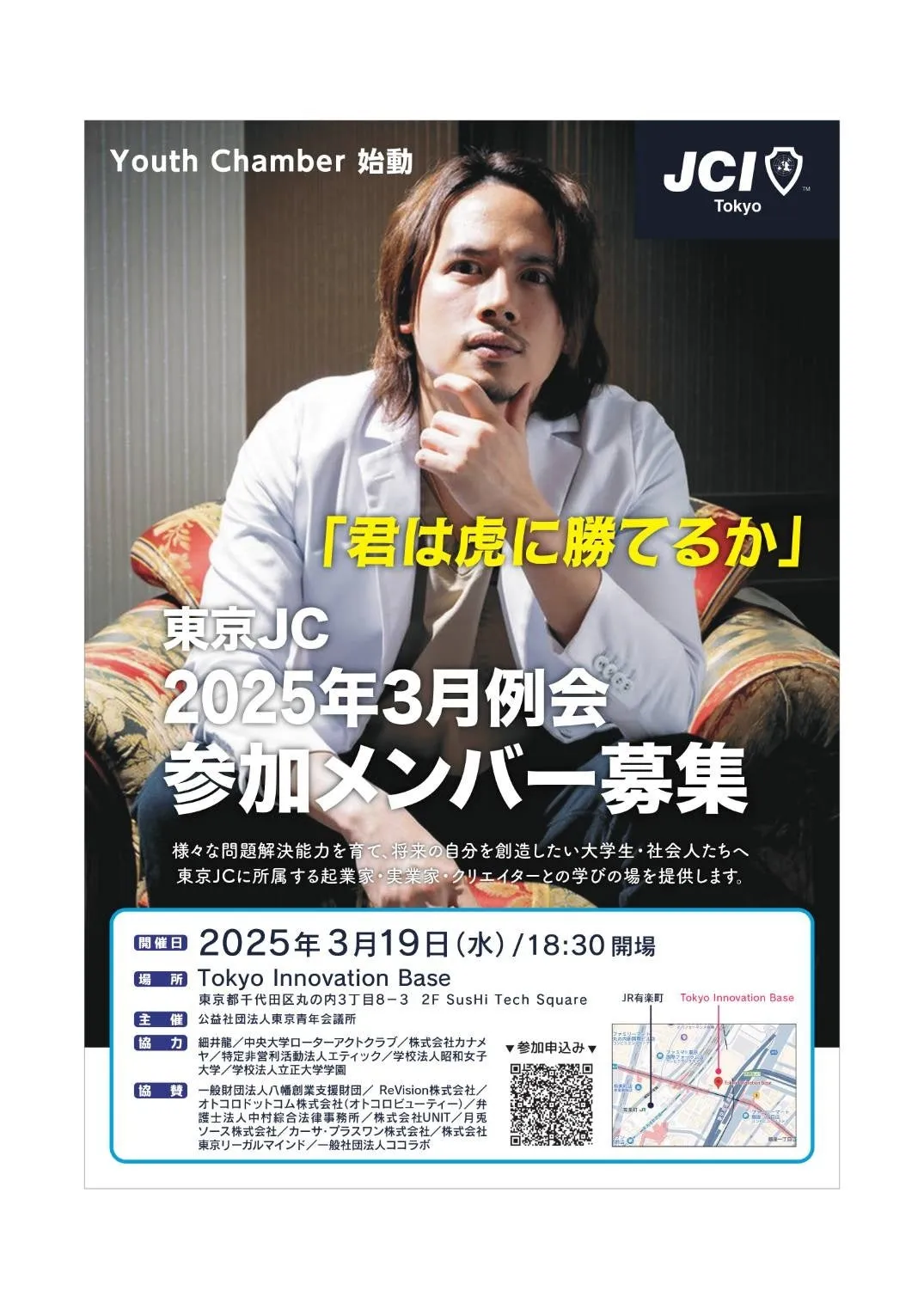 2025年3月19日(水)、東京の中心、千代田区のTokyo Innovation Baseにて、公益社団法人東京青年会議所の2025年度3月例会「Youth Chamber新しい変革の起点」が開催されます。このイベントでは、学生たちが地域や社会の課題を発見し、解決に向けて主体的に行動することを目指す「Youth Chamber(YC)」を初めて紹介します。
