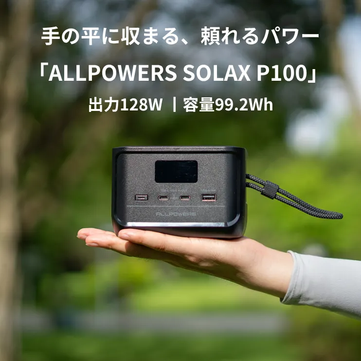 ALLPOWERSの「SOLAX P100」は、ポータブル電源の新たな定番として、多様なニーズを満たす性能を備えています。登山やキャンプといったアクティブなシーンはもちろん、旅行時の必需品としても大変重宝するアイテムです。ぜひ、この機会に新しいポータブル電源を手に入れてみてはいかがしょうか。