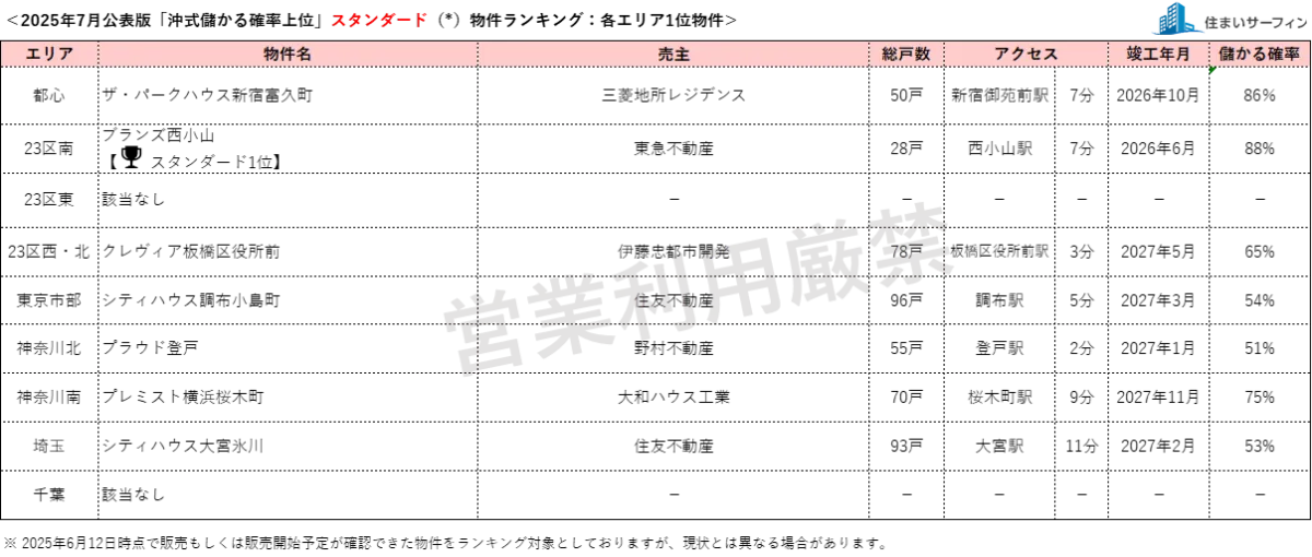 2025年6月12日時点で確認された物件が対象となっており、詳細なランキング情報は「住まいサーフィン」の公式サイトで確認できます。