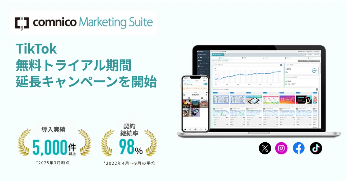 株式会社コムニコ(東京港区に本社を置く)は、自社のSNS運用効率化ツール「コムニコ マーケティングスイート」において、TikTokアカウントの新規契約に向けた無料トライアル期間の延長キャンペーンを発表しました。これは、今後ますます盛り上がると期待されるTikTokマーケットにおいて、企業の皆様が気軽にその魅力を体験できるようにとの思いから実施されます。