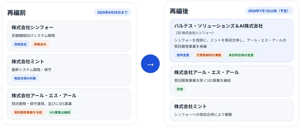 組織再編は2026年7月1日に施行される計画です。バルテスは以下の施策を実施します。