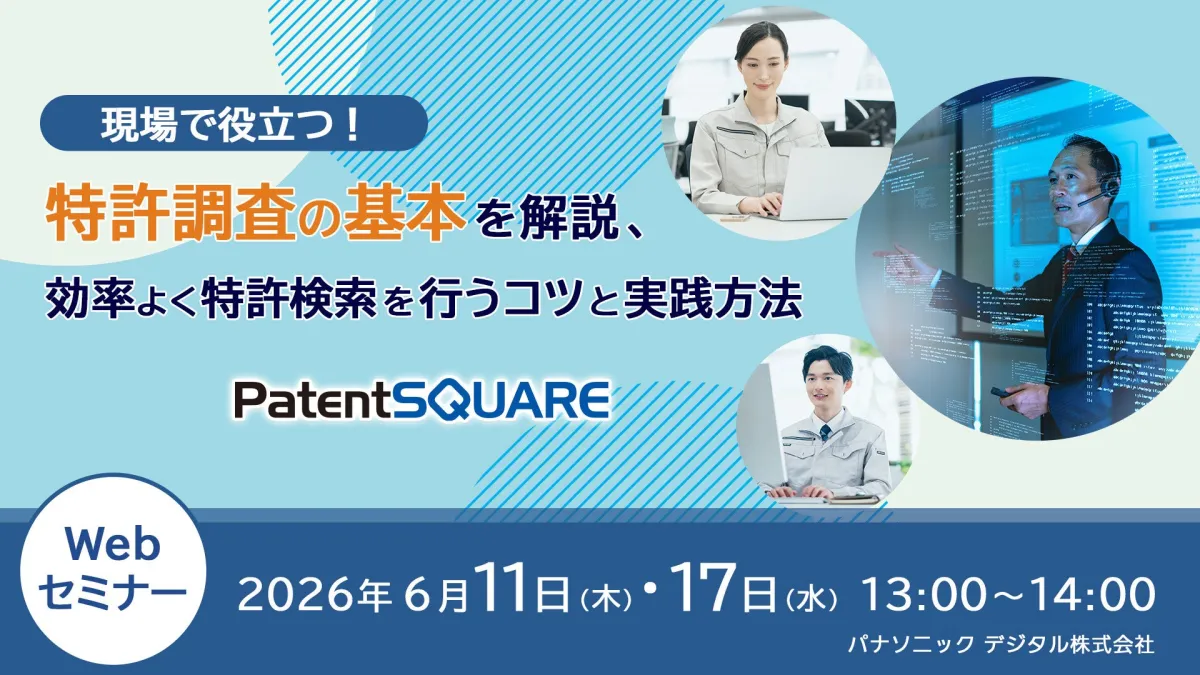 特許調査は、研究開発や知的財産業務において必須のスキルです。しかし、特許調査に取り組む中で、検索漏れやノイズの多さに悩む担当者は少なくありません。そのような課題を解決するため、「現場で役立つ!特許調査の基本を解説、効率よく特許検索を行うコツと実践方法」と題した無料Webセミナーが、パナソニック デジタル株式会社によって開催されます。