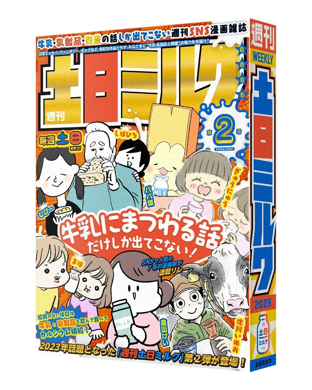 牛乳や乳製品に関するオリジナル漫画だけを集めたSNS漫画雑誌『週刊土日ミルク』の第2号が、2025年3月8日から発行されることが決定しました。2023年に発行された第1号は、多くの読者に響く内容となり、再発行の要望が高まりました。その結果、今回の第2号が実現しました。