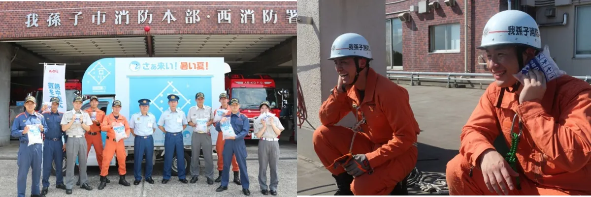 また、同日、消防職場向けに小久保製氷冷蔵の「ロックアイス」を利用した熱中症対策の支援も行いました。私たちは、「声をかけること」で熱中症による危険を少しでも減らせるという理念をもとに活動しています。消防署の皆さんに氷を提供することで、職場の熱中症対策を強化し、さらにはそれをもとに他の職場でも同様の対策を広めていくことが期待されます。