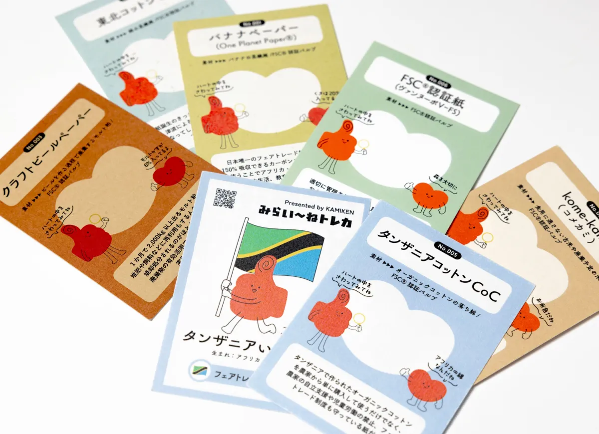 東北コットンCoCトレーディングカード: 東日本大震災の復興支援として生まれた用紙。