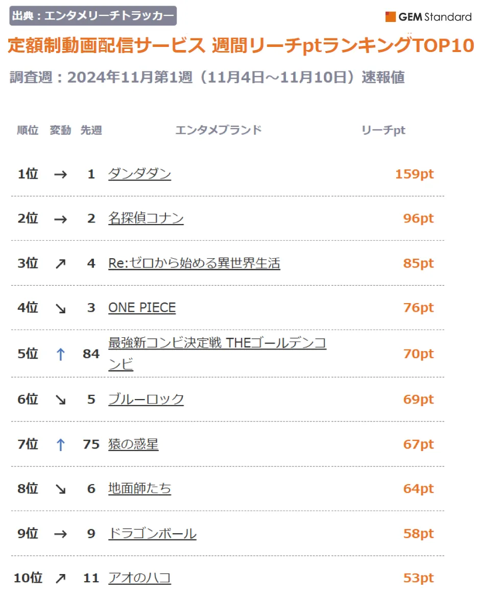 週間リーチptランキングで『ゴールデンコンビ』がトップ!動画配信サービス人気コンテンツを徹底分析