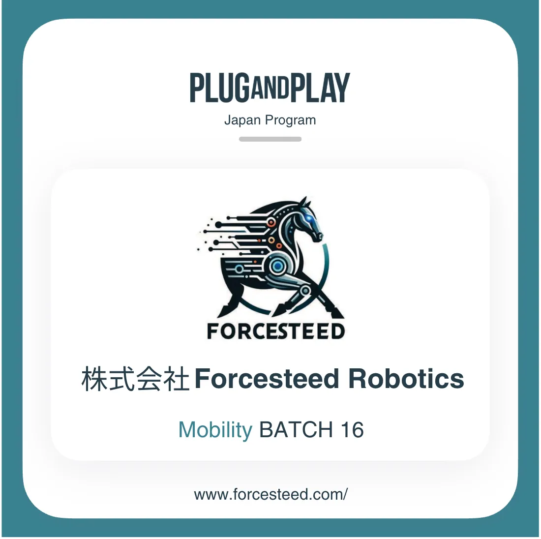 Forcesteed Robotics、Plug and Play Japanの新しいアクセラレータープログラムに採択