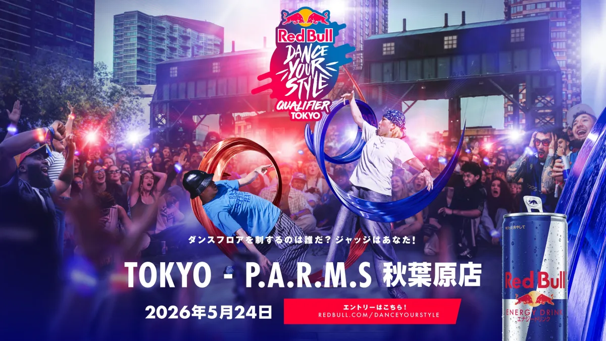 今年、2026年5月24日(日)に東京・秋葉原で初めての一般エントリー募集を含む「Red Bull Dance Your Style Qualifier Tokyo」が行われます。このイベントは、12:00に開場し、13:30に開演、18:00までの予定です。会場はパームス秋葉原店で、入場には2,000円のエントリー費が必要ですが、別途ドリンク代がかかります。観覧チケットは1,500円となっています。