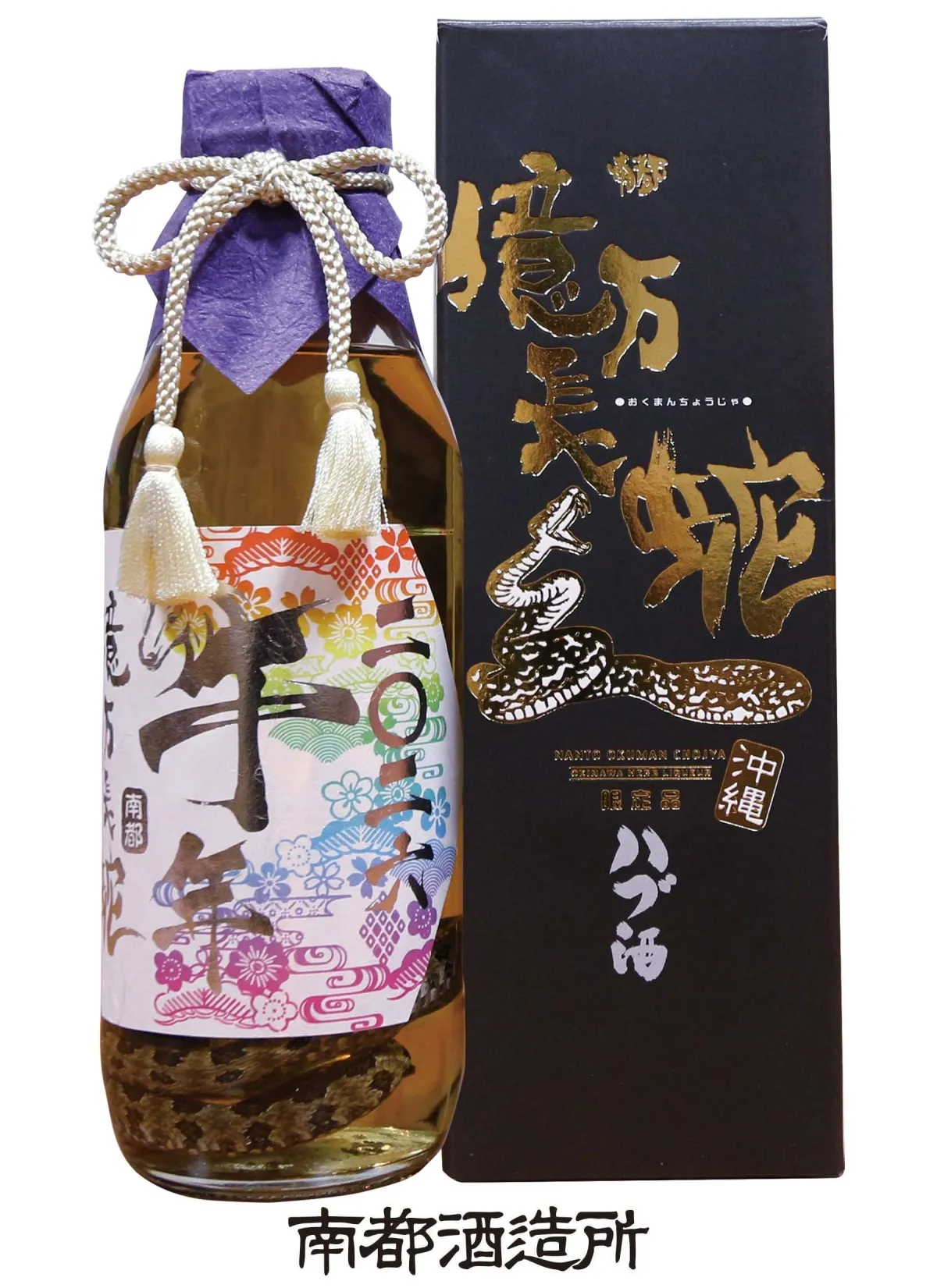 続いて、縁起物としても知られる「南都億万長蛇 ハブ入りハブ酒【午年限定ラベル】」。こちらは高級酒で、度数は35%。実際にハブを丸ごと1匹漬け込んでおり、長命の象徴としても重宝されています。見た目のインパクトだけではなく、深みのある風味が長く続く楽しさも魅力です。450mlで11,000円(税込)という価格は、特別なギフトにもぴったりです。