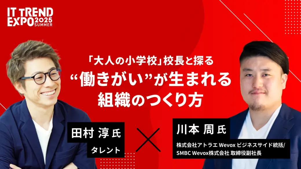 株式会社アトラエは、2025年9月に行われる大規模なオンライン展示会「ITトレンドEXPO2025 SUMMER」にて、特別セッションを開催します。このセッションには、タレントの田村淳氏とWevoxビジネスサイド統括の川本周が登壇し、今求められる「働きがい」と効果的な組織づくりについて深く掘り下げていきます。