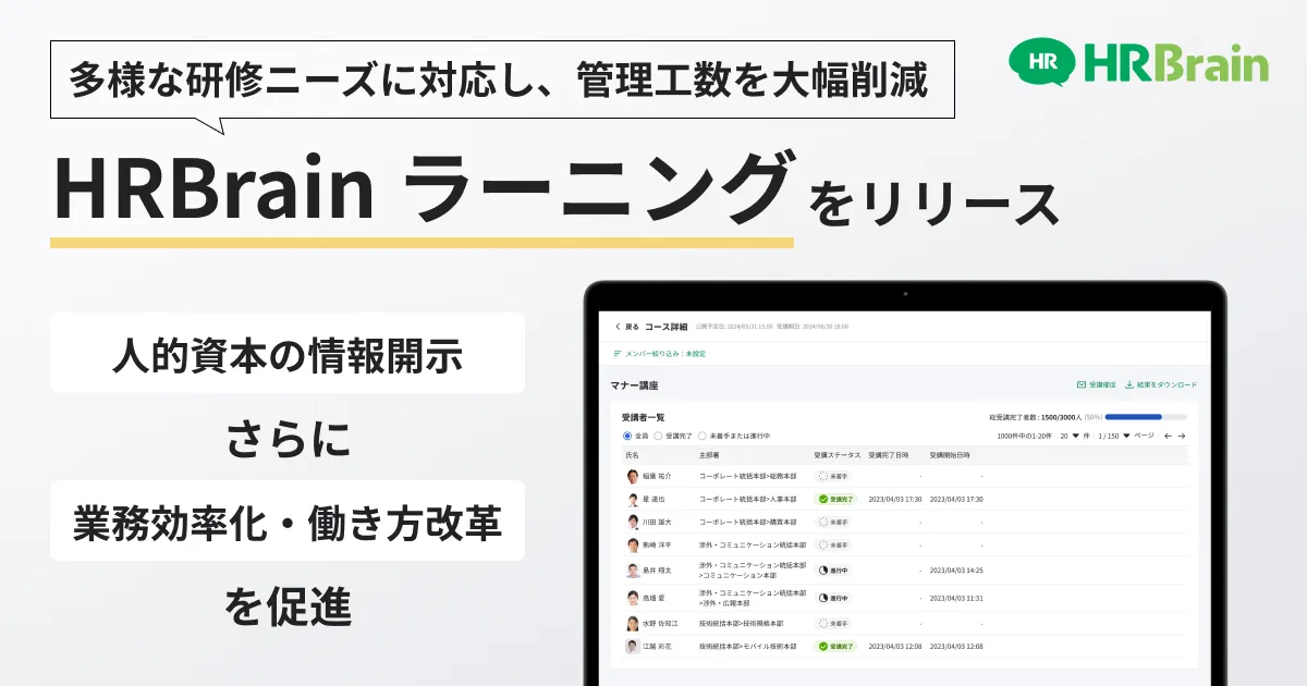 株式会社HRBrainは、企業の研修ニーズに応える新しい教育サービス『HRBrain ラーニング』の提供を開始しました。これは、利用が簡単なインターフェースを持つLMS(学習管理システム)であり、多様な研修ニーズに対応することを目的としています。