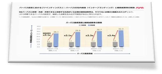 調査を通じて興味深い点は、従業員の仕事に対する誇りと達成感に最も影響を与える因子が「社風・カルチャーのマッチ度」であるということです。このことは、従業員が自社のパーパスに理解し、納得し、共感することが持続的な成果を生む要因になることを示唆しています。具体的には、パーパスに理解や共感していると答えた社員がいる企業は、そうでない企業と比べて継続的な成功が3倍以上のスコアを出すことが報告されています。