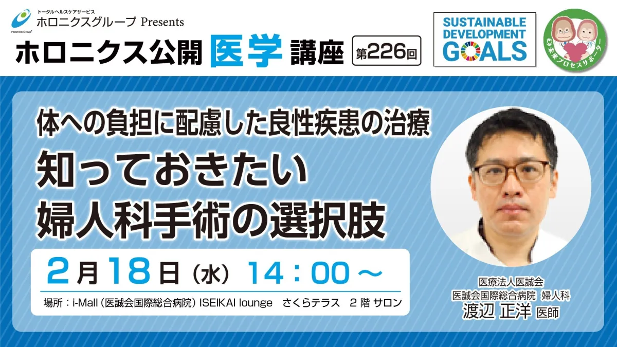 医療法人医誠会は、2026年2月18日(水)に、体への負担に配慮した良性婦人科疾患の治療をテーマにした医療講座を開催します。本講座は、婦人科に関心を持つ女性に向けて、治療法の選択肢を学ぶ貴重な機会です。,