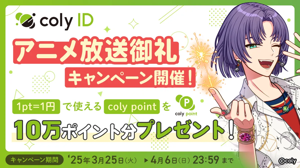 株式会社coly(東京都港区)が『魔法使いの約束』のTVアニメ放送を記念して、特別なキャンペーンを発表しました。2025年3月25日(火)から4月6日(日)までの期間、参加者の中から抽選で10名に「10,000 colyポイント」がプレゼントされるという嬉しいニュースです。