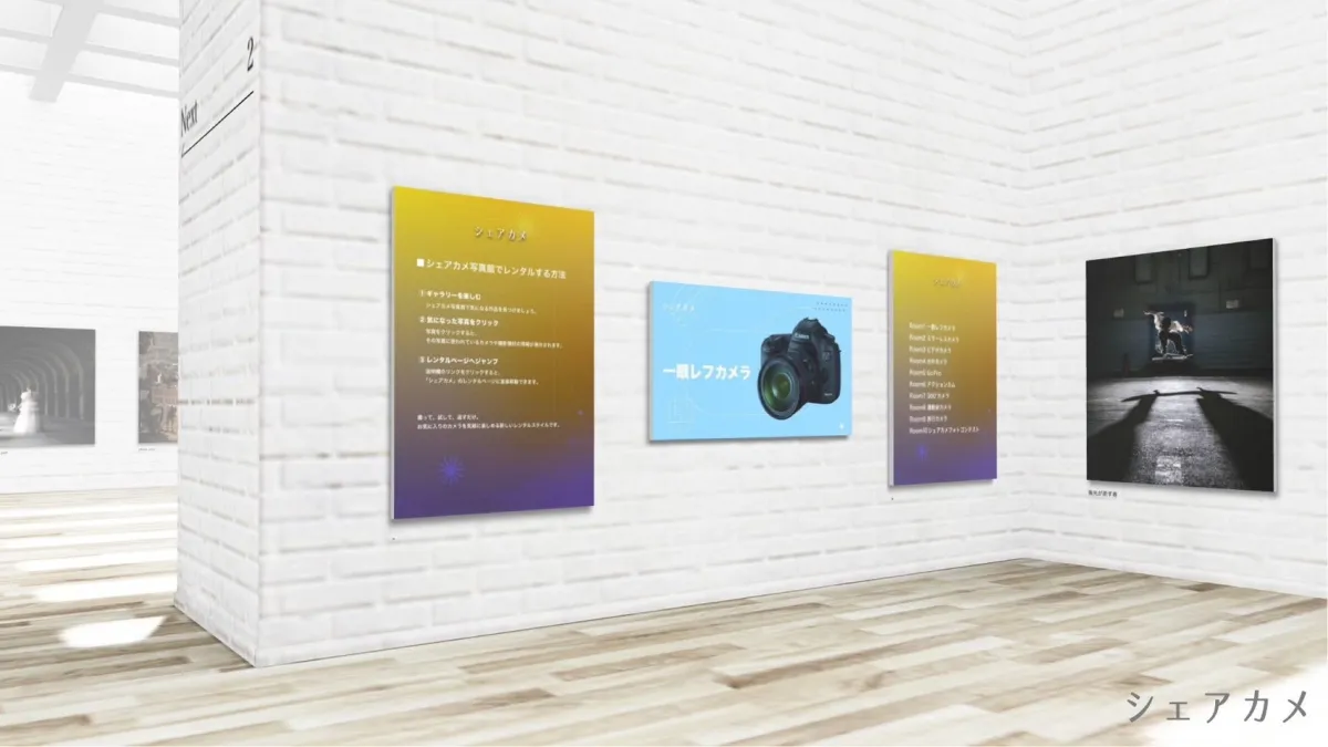 現在、『シェアカメ写真館』では数つの部屋に分かれた作品展示が行われています。