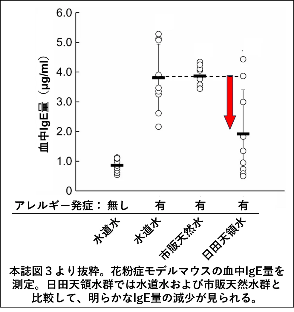 さらに、この水には高い抗酸化作用も確認され、これがアレルギー抑制に寄与していることも示唆されました。これにより、日田天領水はアレルギー疾患に対する新たな治療法としての位置付けが期待されます。