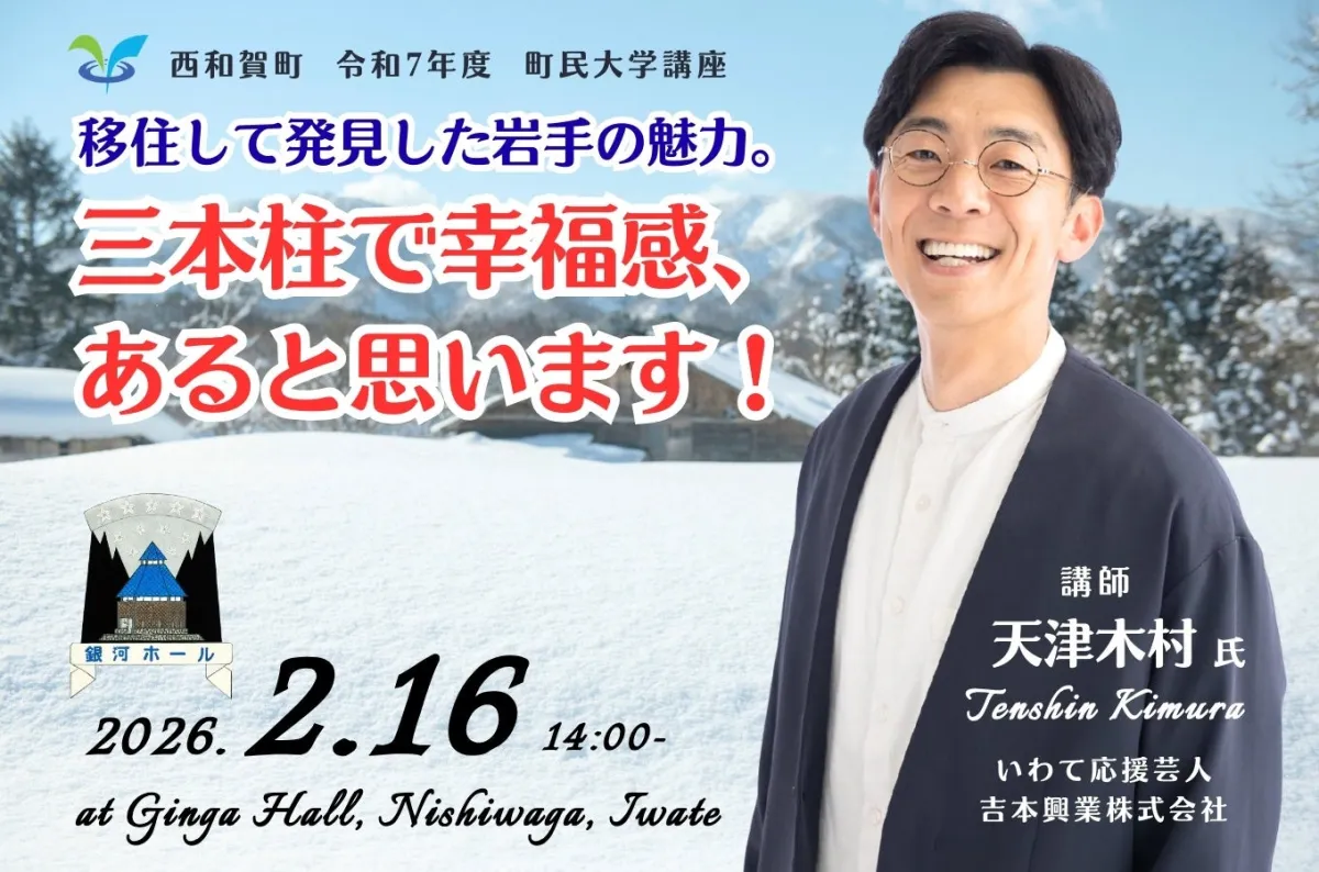 2023年2月16日(月)、岩手県西和賀町の文化創造館「銀河ホール」で、吉本興業の人気タレントである天津木村氏を講師に迎えた特別な講演会が開催されます。この講演は、令和7年度の町民大学講座の一環として行われ、移住に関心のある方々にとって見逃せない貴重な機会となるでしょう。