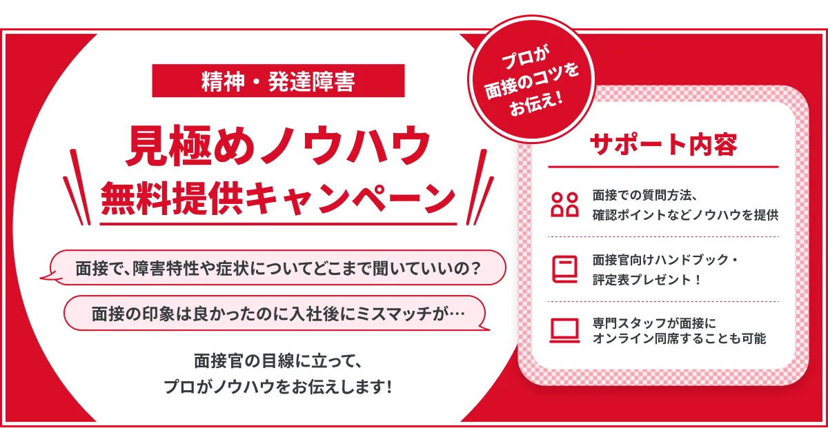 このような課題を抱える企業に向けて、Kaienは「発達・精神障害見極めノウハウ無料提供キャンペーン」を実施します。キャンペーンでは、2026年1月末までに新規契約をいただいた企業に、通常有料で提供している面接に関する専門知識やノウハウを無料で提供します。これにより、企業が適切な採用を行う支援をし、安定した雇用を実現する手助けをします。
