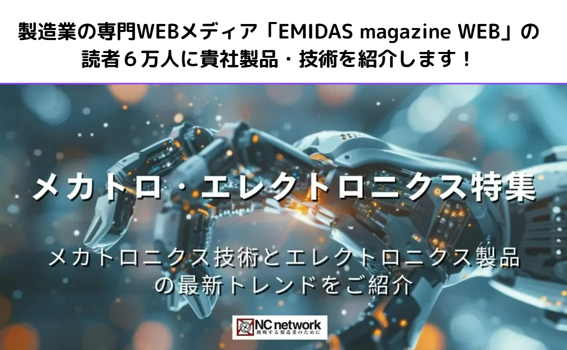 製造業の活性化が求められる中、株式会社NCネットワークが運営する製造業ビジネスマッチングプラットフォーム「エミダス」は、新たな取り組みとして【メカトロ・エレクトロニクス特集】のエントリー企業を募集しています。この特集は、7月中旬より製造業向け情報メディア「EMIDAS magazine WEB」で公開され、企業の技術や製品情報を広く発信することを目的としています。