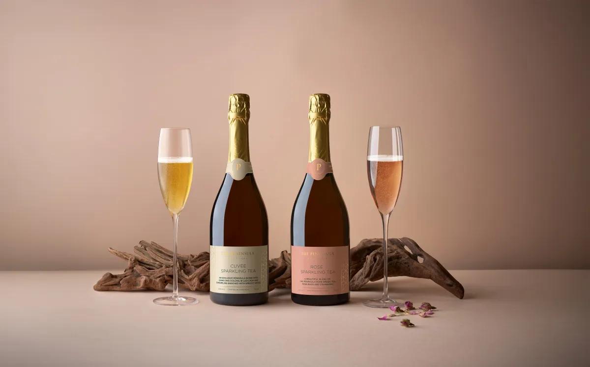 このスパークリングティーは、750mlのボトルで価格は10,800円(税込)。しっかりとしたテイストの中にアプリコットの甘さが加わり、口当たりは軽やかな泡と共に広がります。ペニンシュラならではの茶の魅力が存分に味わえる一杯です。