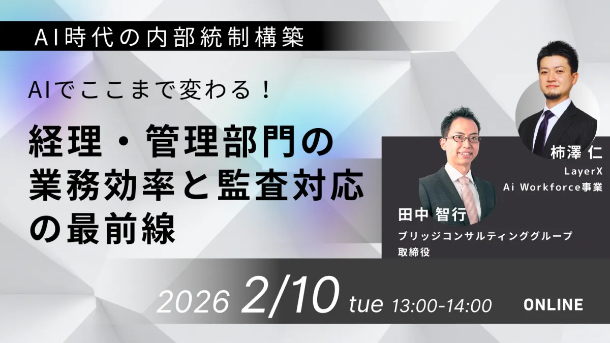 2026年2月10日、ブリッジコンサルティンググループ株式会社(以下、BCG)とLayerXが共催する無料オンラインセミナー「AIでここまで変わる!経理・管理部門の業務効率と監査対応の最前線」が開催されます。このセミナーは、企業のIPO準備において欠かせない内部統制の整備と、AIを利用した業務効率化について重点的に学ぶことができます。